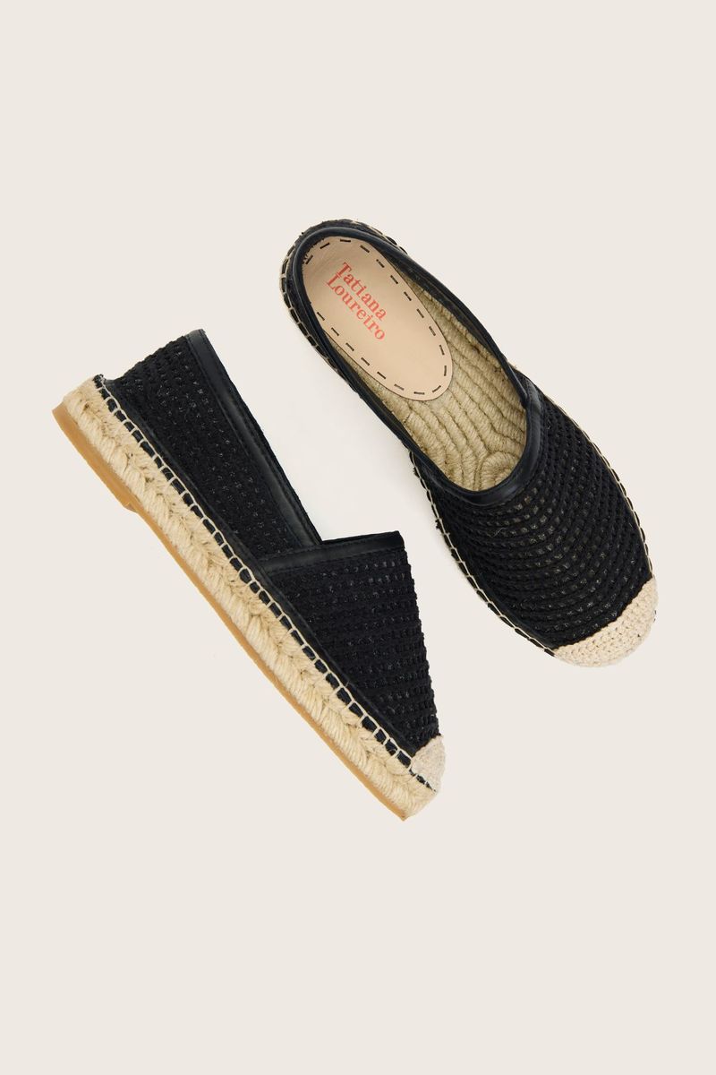 A sola em borracha oferece estabilidade e durabilidade, mantendo o conforto característico das alpargatas Tatiana Loureiro.