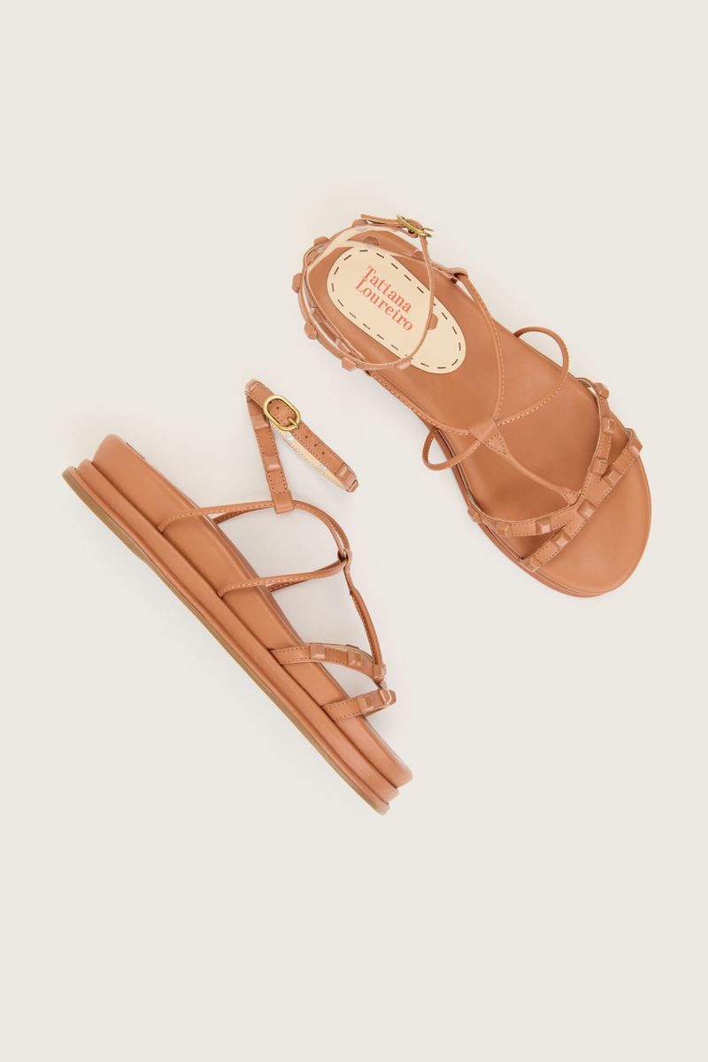 PAPETE GLADIADORA SPIKE SQUARE FLATFORM FORRO DE COURO ARGILA
