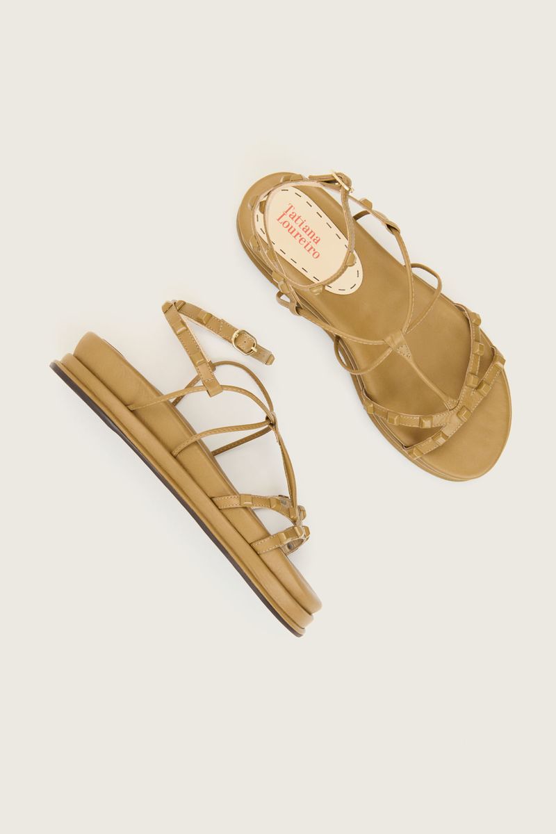 PAPETE GLADIADORA SPIKE SQUARE FLATFORM FORRO DE COURO CAQUI