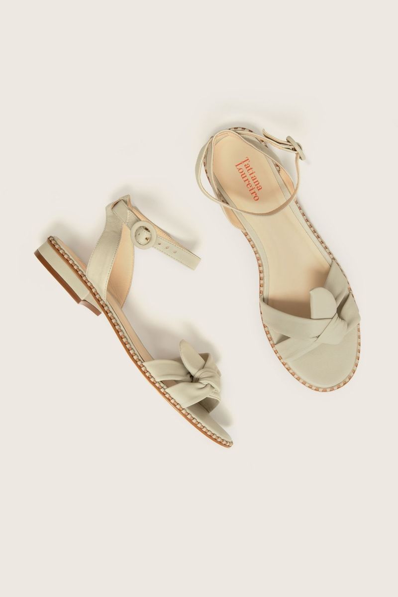 O fechamento é feito por um nó frontal delicado e tira ajustável no tornozelo, proporcionando praticidade e um ajuste perfeito. O traseiro em couro macio complementa o conforto, enquanto a sola antiderrapante Tatiana Loureiro oferece segurança e acabamento sofisticado com aparência de couro natural.