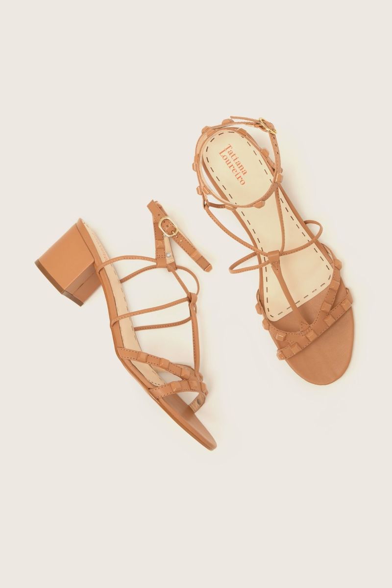 SANDÁLIA GLADIADORA SPIKE SQUARE FORRO DE COURO AVELÃ