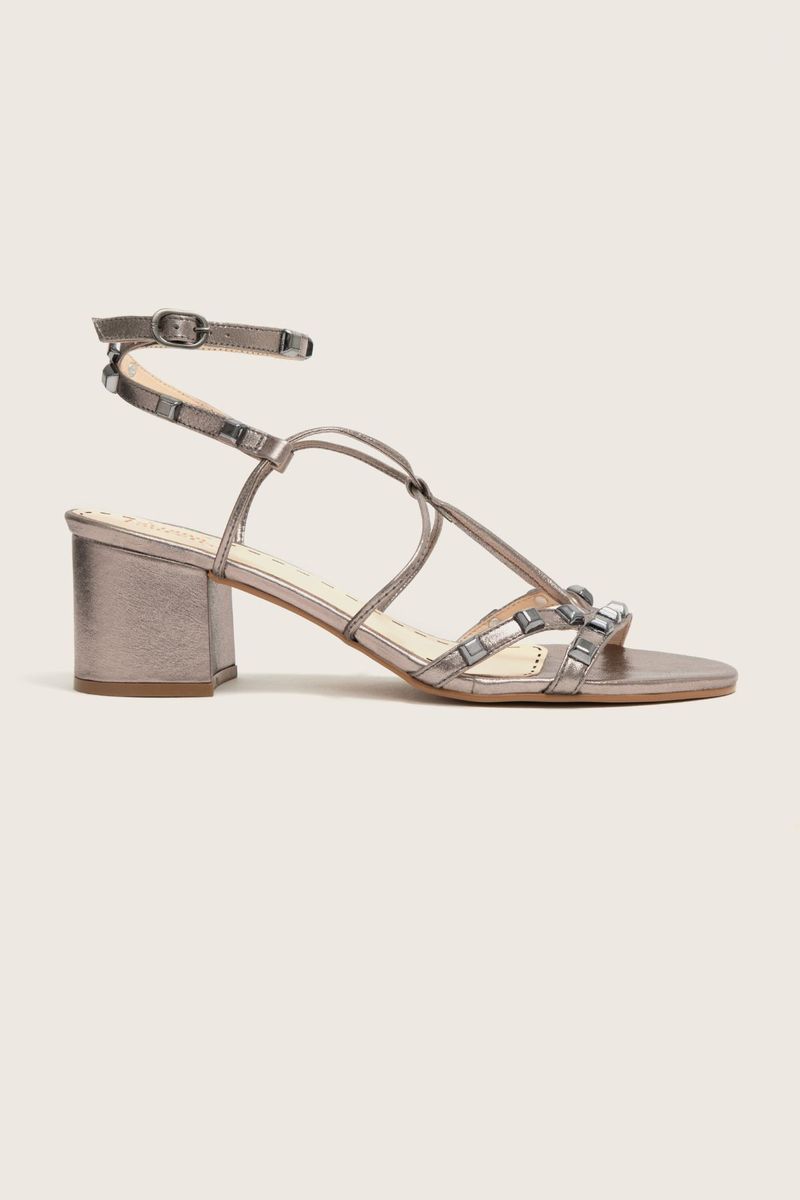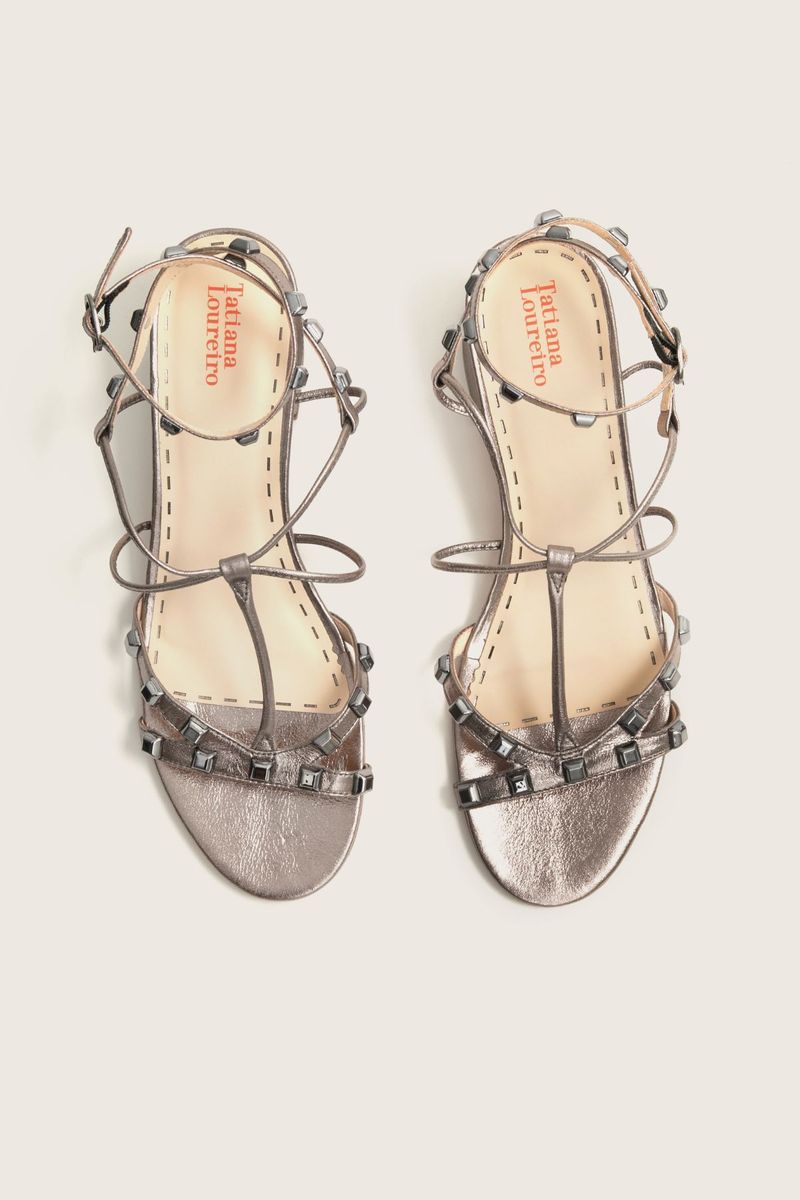 SANDÁLIA GLADIADORA SPIKE SQUARE FORRO DE COURO AÇO
