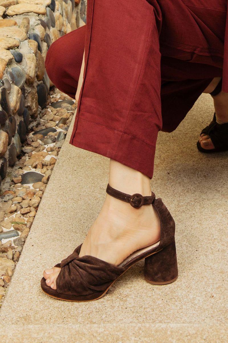 - Sandália meia pata em camurça