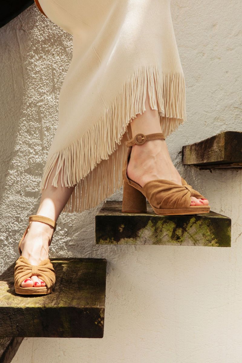 - Sandália meia pata em camurça
