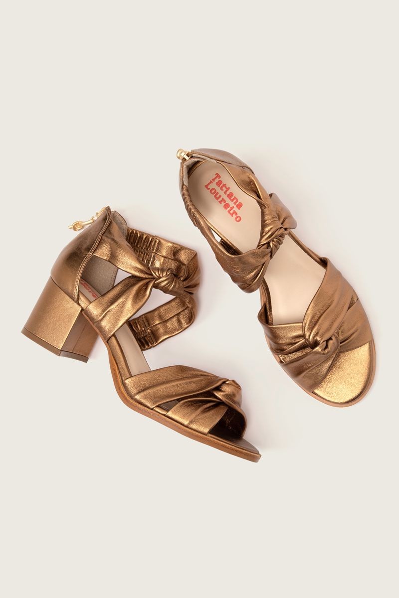 SANDÁLIA NÓ MESTIÇO SALTO BLOCO (PARA PEITO DE PÉ BAIXO) BRONZE