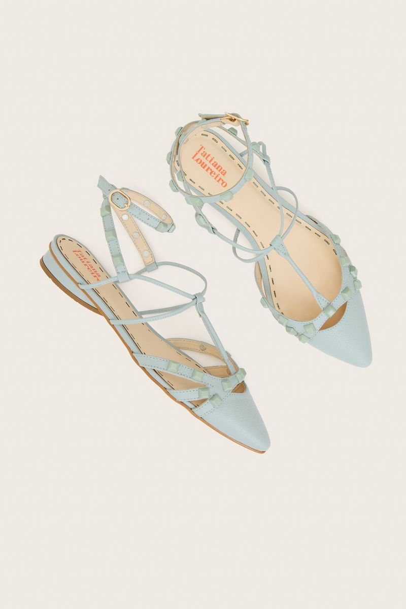 SAPATILHA GLADIADORA SPIKE SQUARE BICO FINO FORRO DE COURO AZUL CLARO