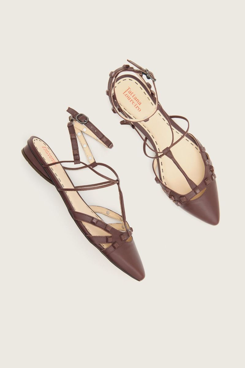 SAPATILHA GLADIADORA SPIKE SQUARE BICO FINO FORRO DE COURO CAFÉ