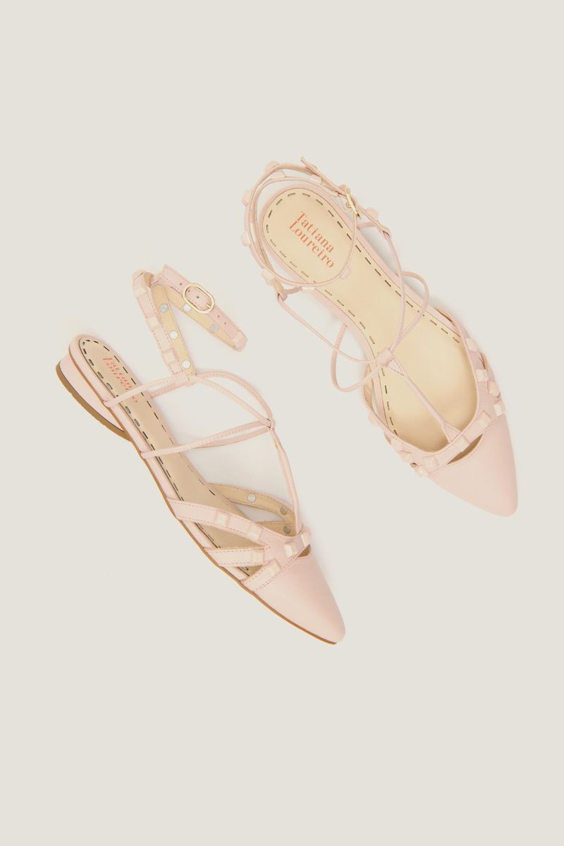 SAPATILHA GLADIADORA SPIKE SQUARE BICO FINO FORRO DE COURO ROSA PÓ
