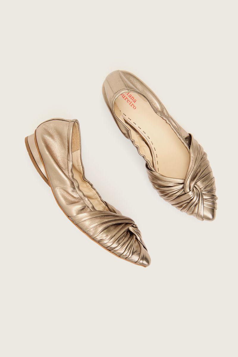 A Sapatilha Nó Mestiço é o modelo mais icônico da Tatiana Loureiro, plissada à mão em couro mestiço vestuário, um material nobre, leve, resistente e com toque macio, que envolve os pés como uma luva.