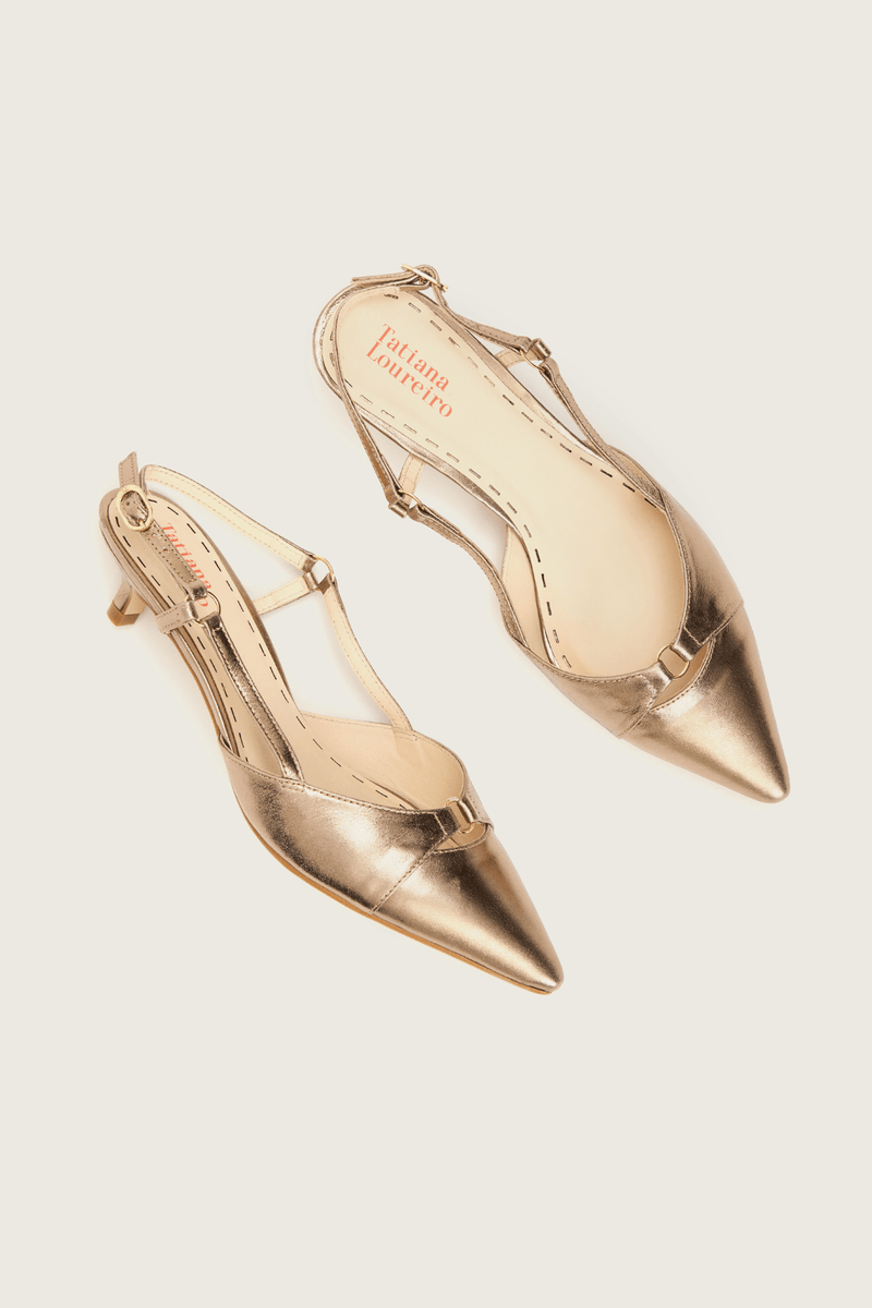 - Scarpin slingback em couro com detalhe de mini argola