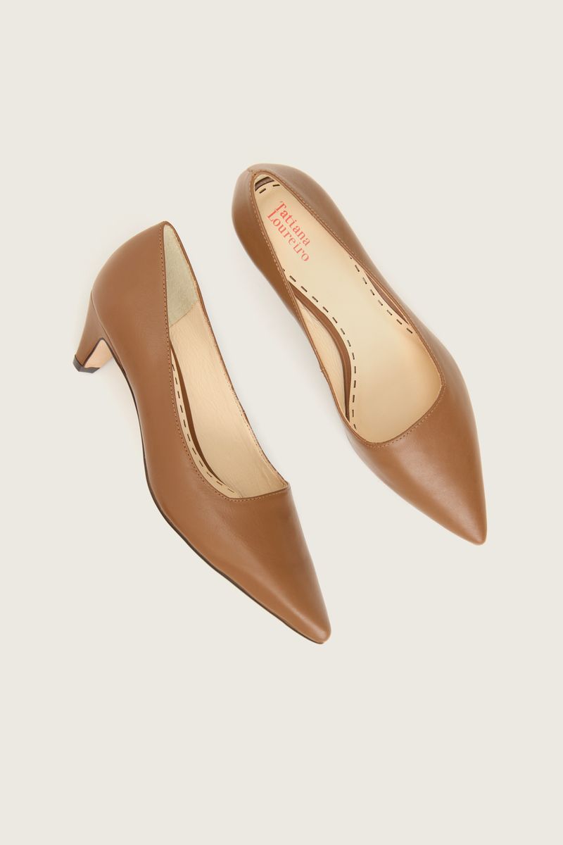 O salto kitten de 5,5 cm é forrado em couro e oferece conforto extra, tornando o modelo ideal para quem busca elegância funcional em diferentes ocasiões.